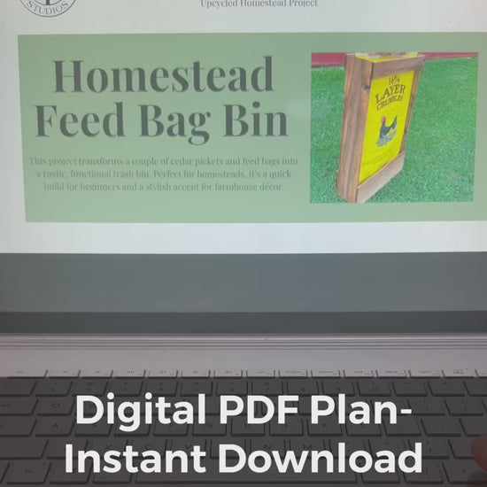 This digital PDF woodworking plan guides you step-by-step through creating a rustic feed bag bin designed to reuse 50 lb livestock feed bags (approx. 30" × 16" × 6"). Perfect for homesteaders, DIYers, and farmhouse décor lovers.